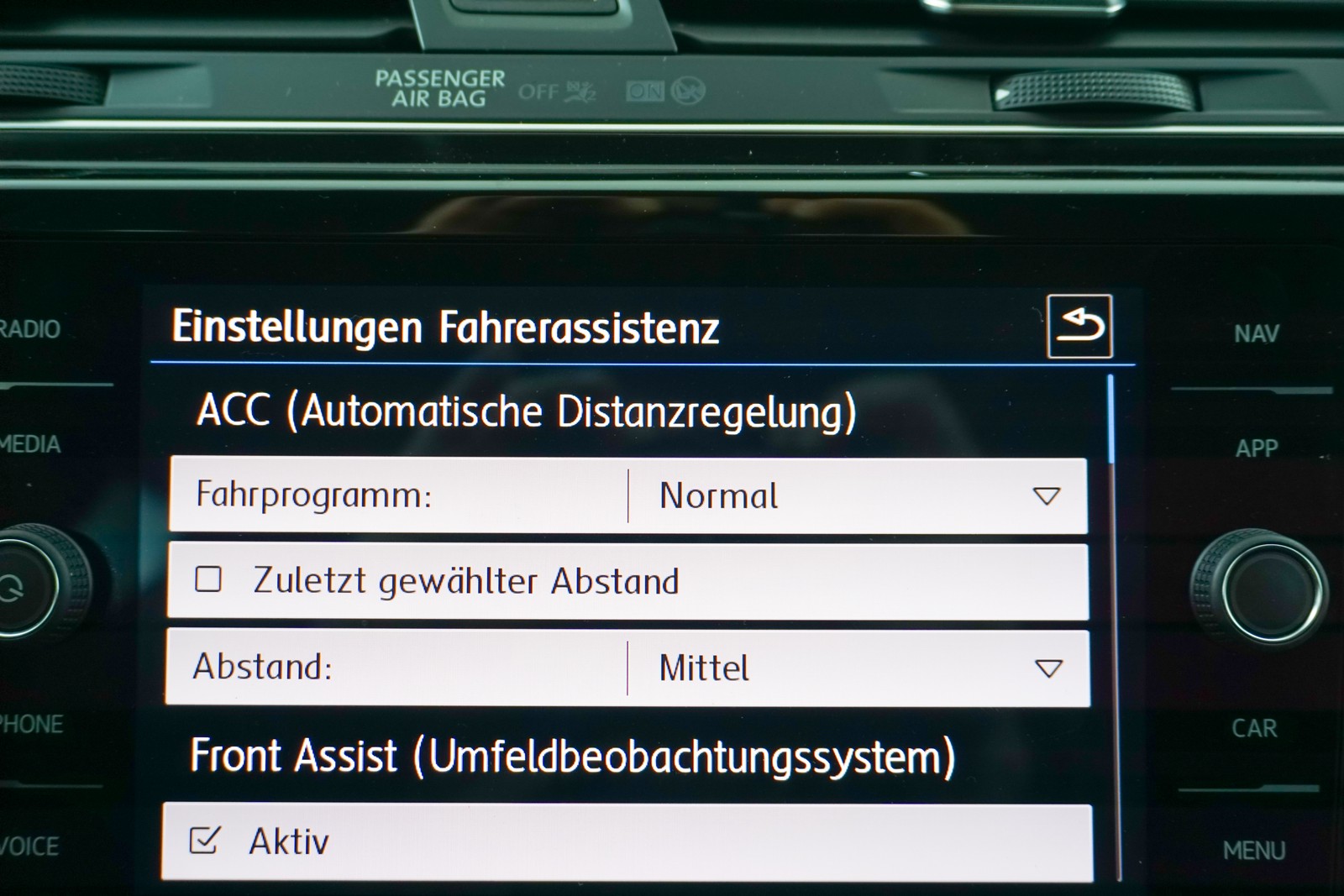 - Fahrassistenz-System: Autom. Distanzregelung (ACC) mit Umfeldbeobachtungssystem (Front assist, bis 210 km/h)